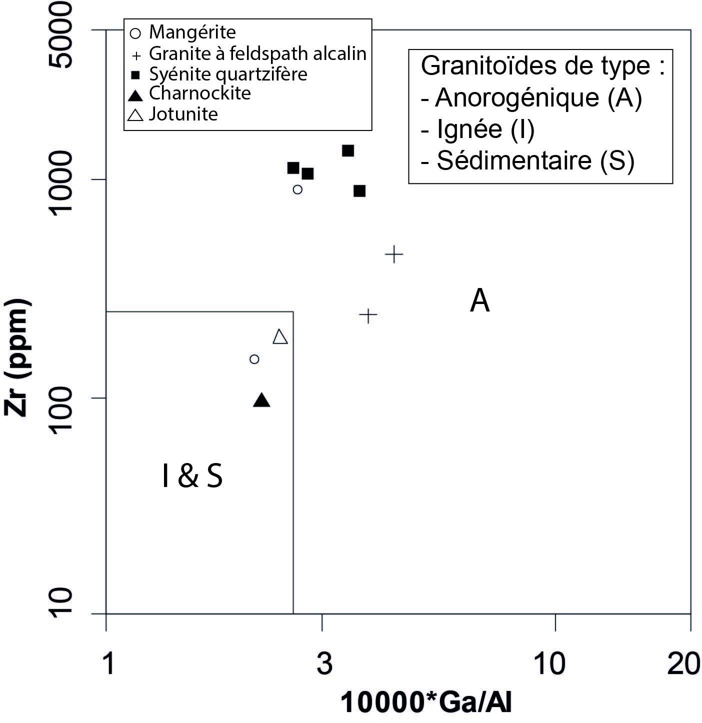 Mangérite, syénite quartzifère et granite à feldspath alcalin à traces d’hypersthène |