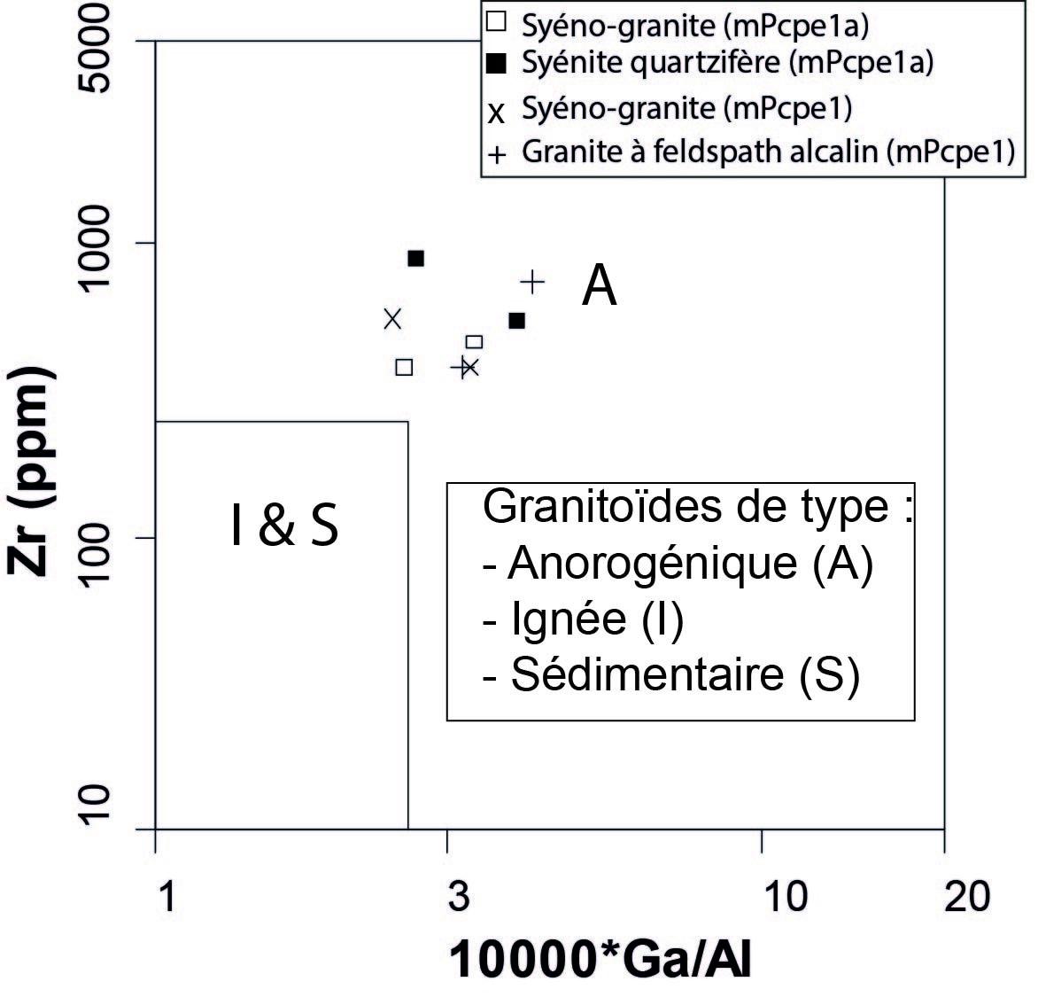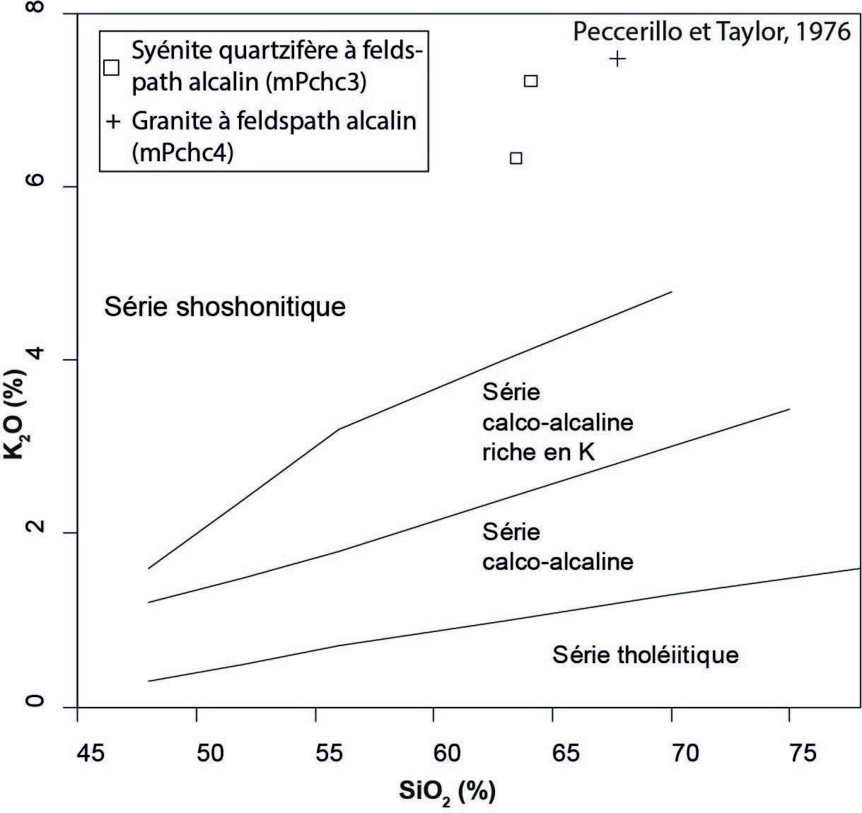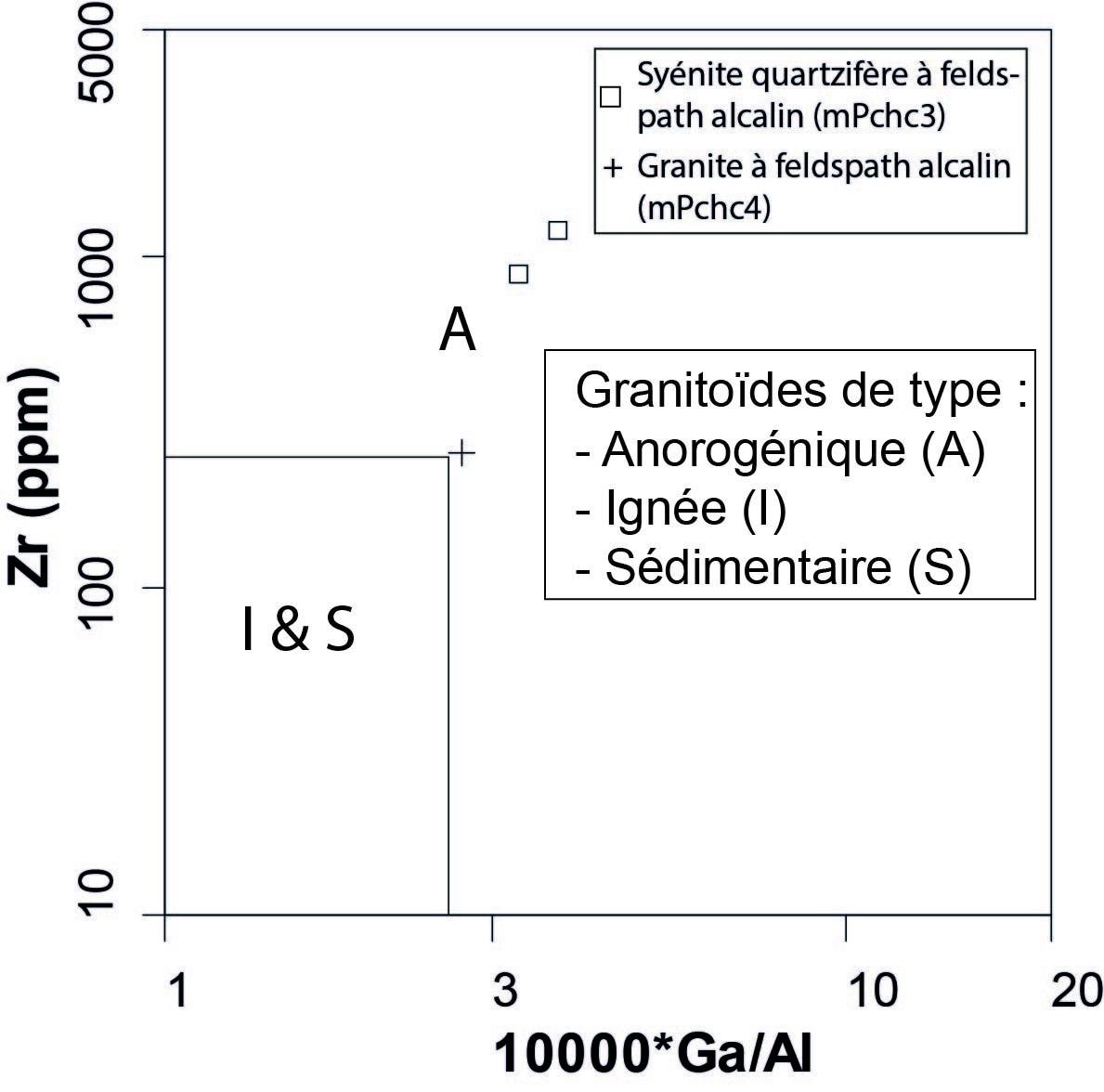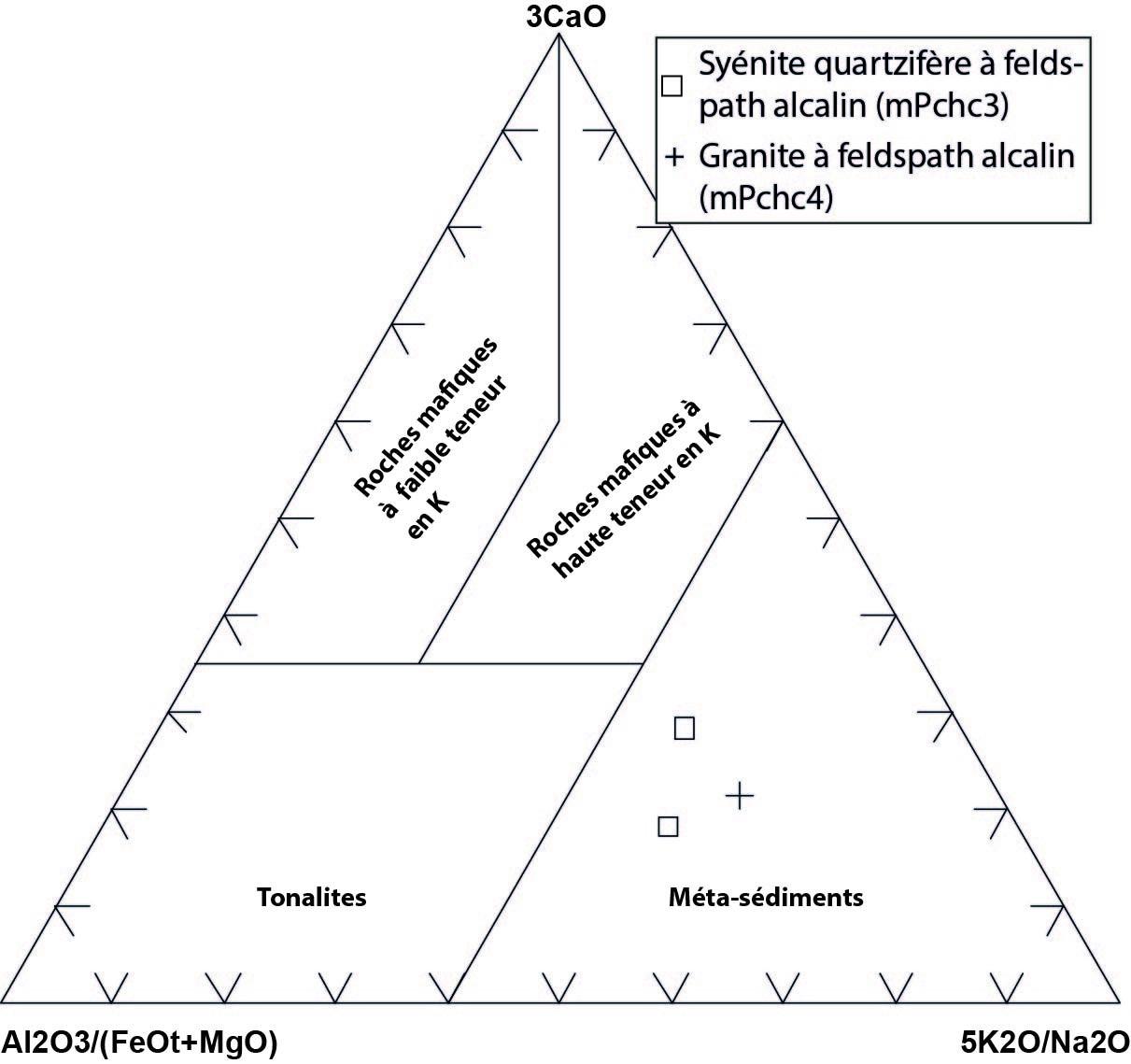 Syénite quartzifère à feldspath alcalin (mPchc3) Granite à feldspath alcalin (mPchc4) |