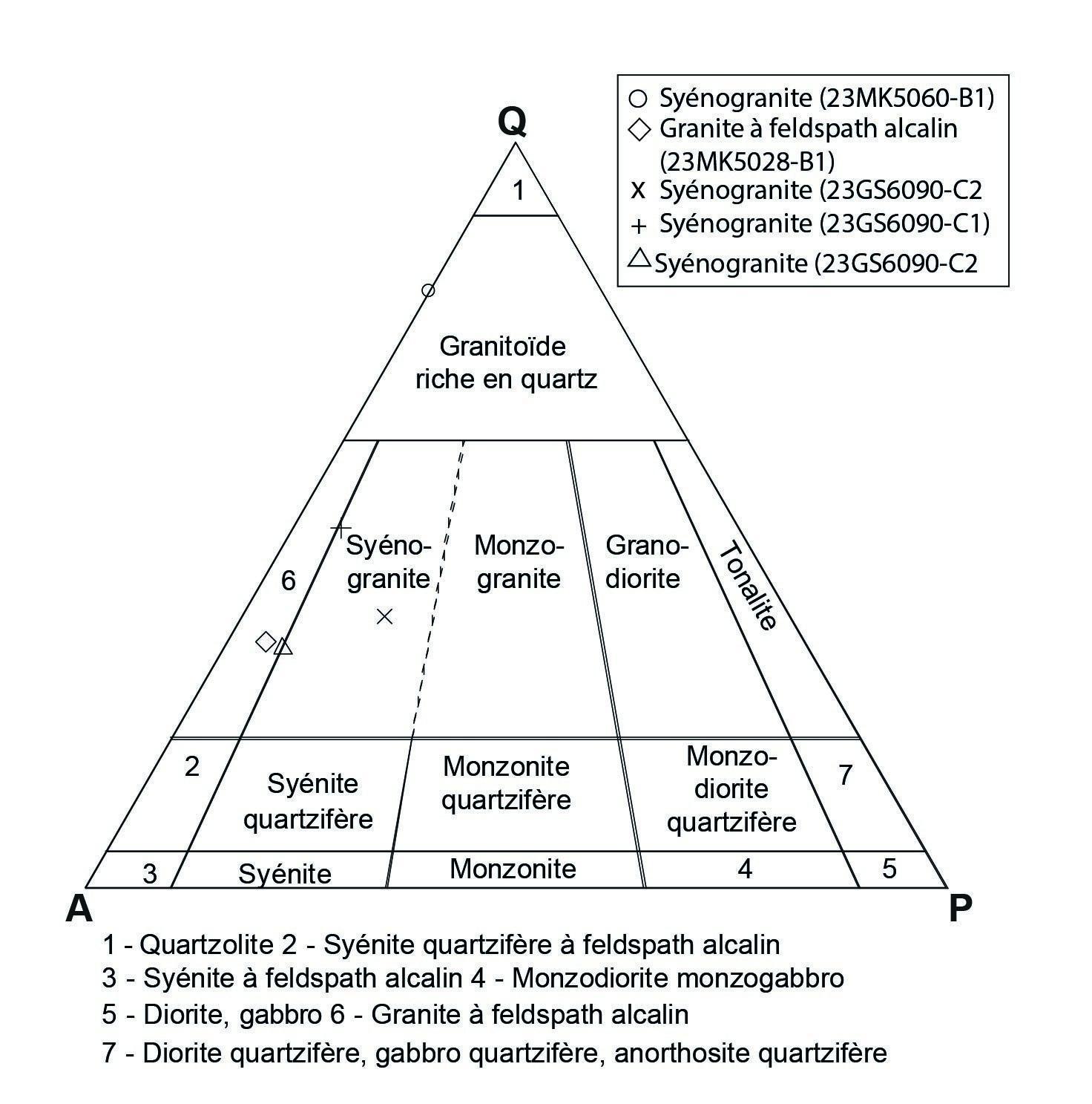 Syénogranite, syénite quartzifère et granite à feldspath alcalin |