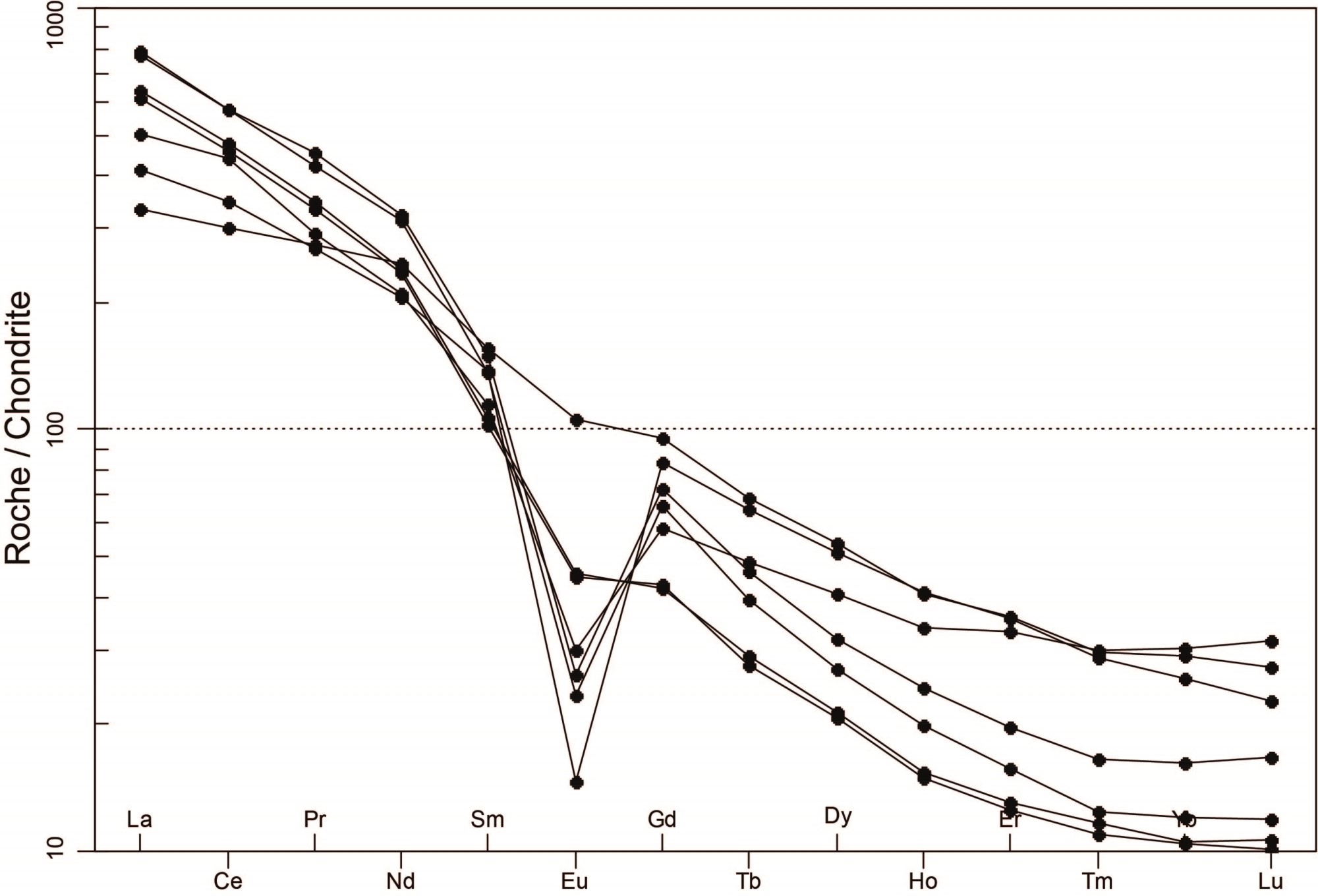 10,90 < (La/Yb)N < 123,24 1,05 < (La/Sm)N < 9,20 1,09 < (Gd/Yb)N < 16,18 1,06 < Eu/Eu* < 9,11 |