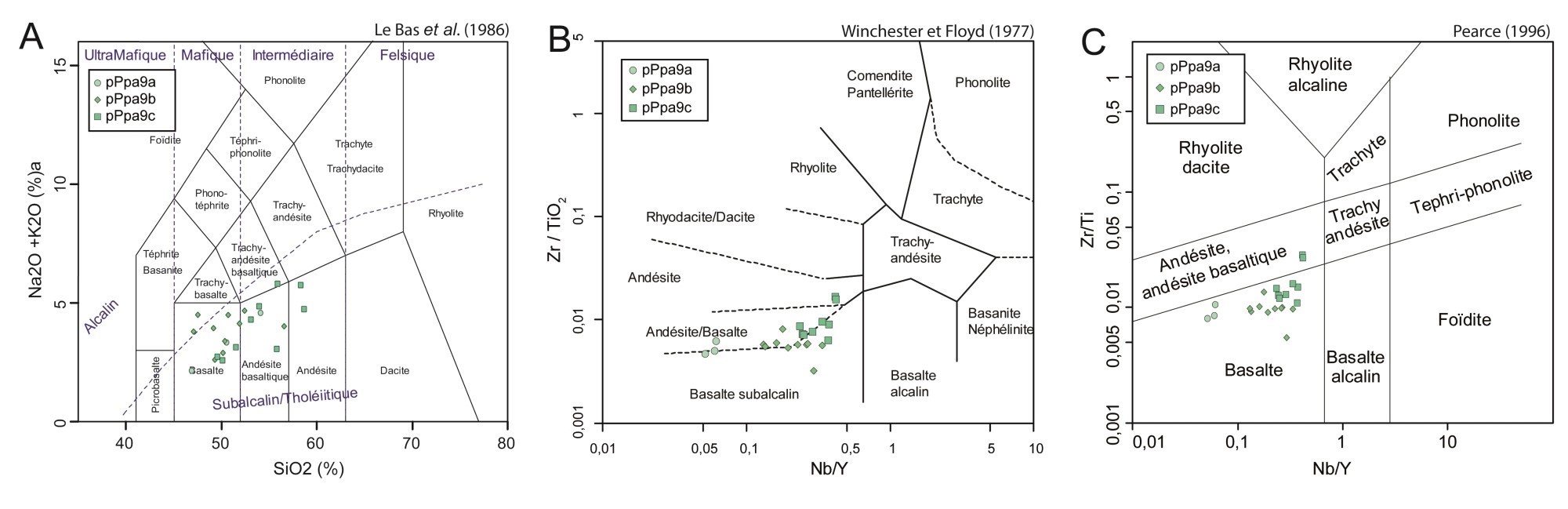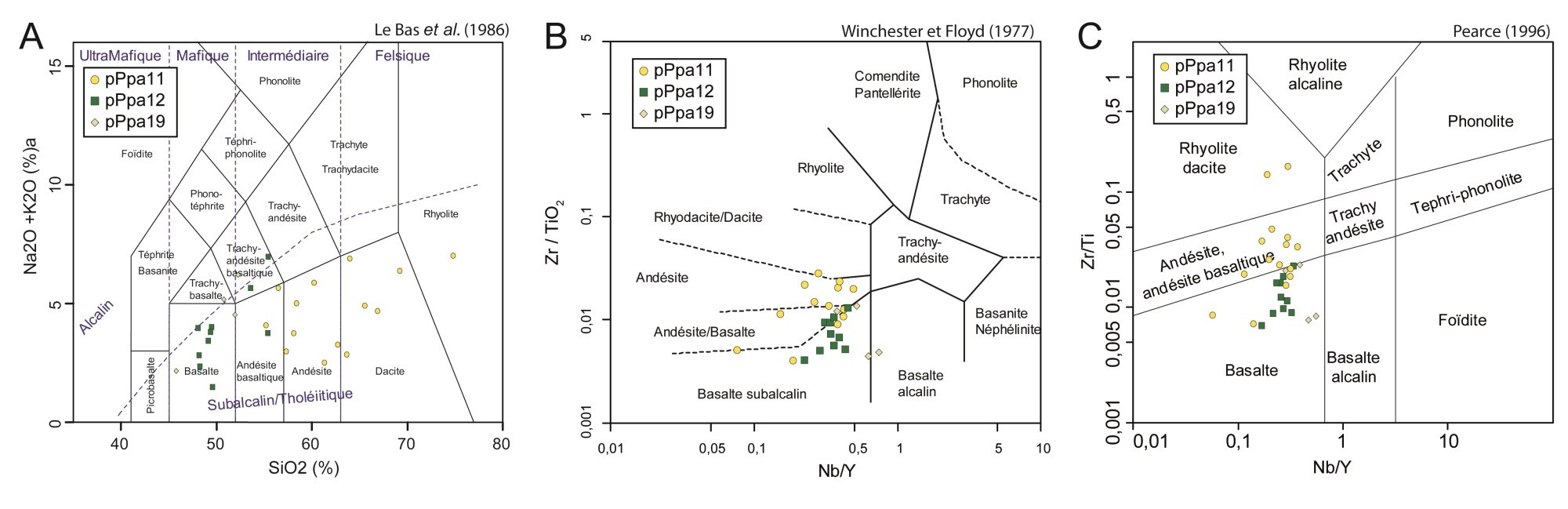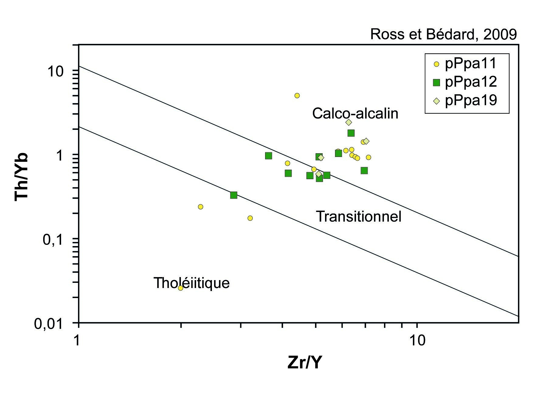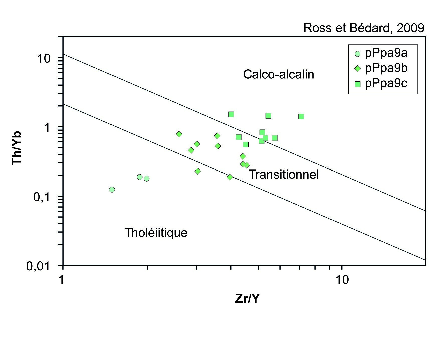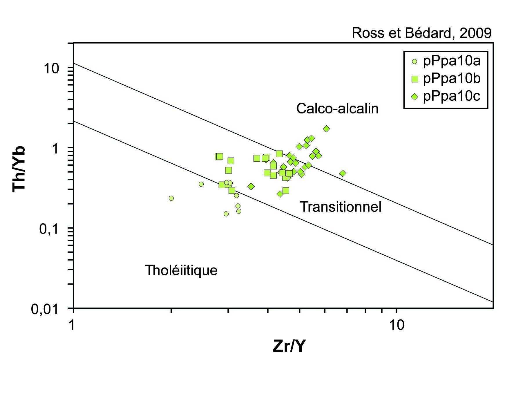 ROSS, P.-S., BÉDARD, J.H., 2009. Magmatic affinity of modern and ancient subalkaline volcanic rocks determined from trace-element discriminant diagrams. Canadian Journal of Earth Science; volume 46, pages 823-839. doi.org/10.1139/E09-054.