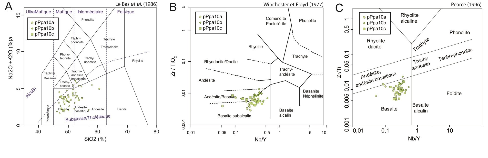 Basalte subalcalin, basalte andésitique et trachyandésite basaltique |