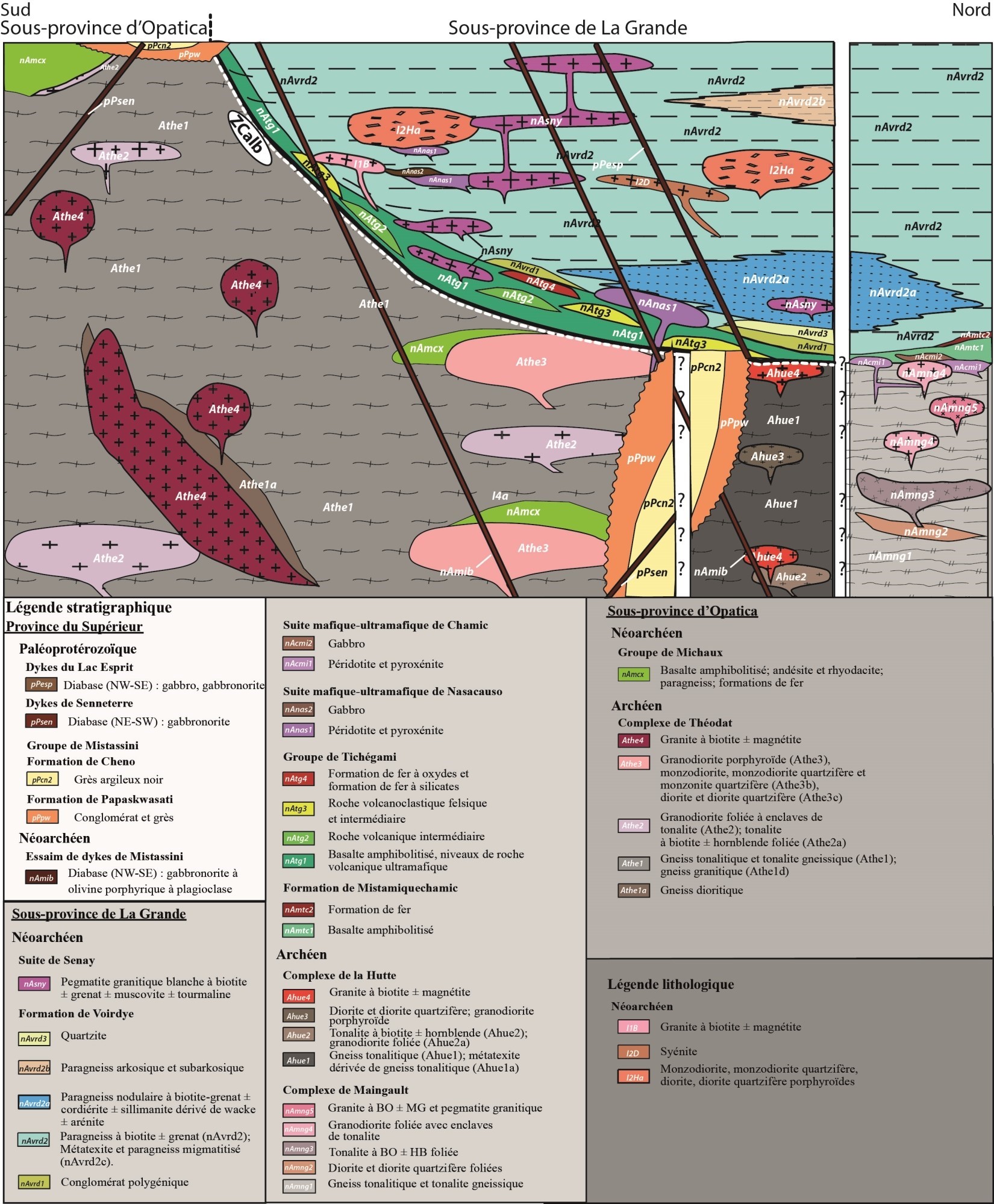 Géologie de la région du lac Chamic, sous-provinces d’Opatica et de La Grande, Eeyou Istchee Baie-James, Québec, Canada
