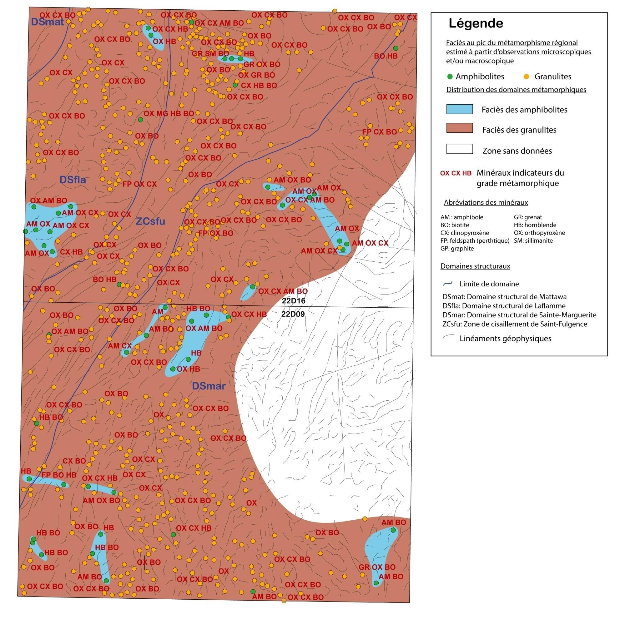Cartographie géologique à l’échelle 1/50 000 | Géologie des feuillets 22D09, 22D10, 22D15 et 22D16 |