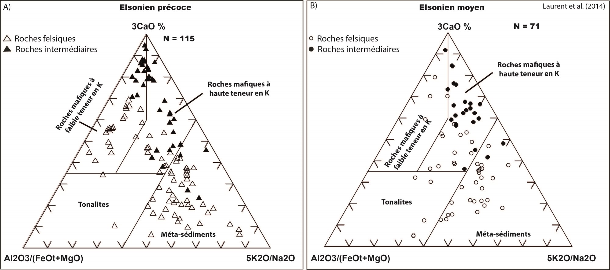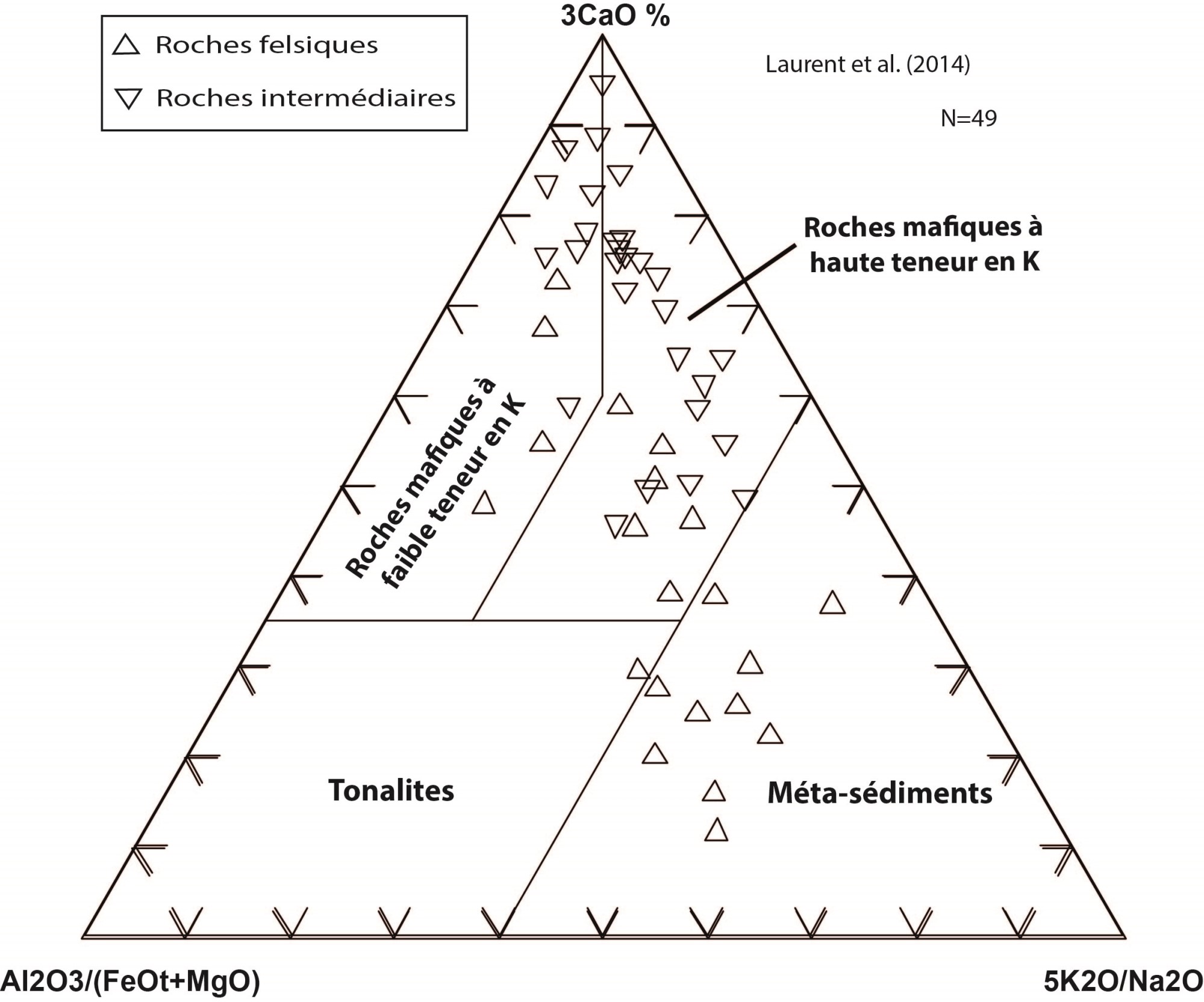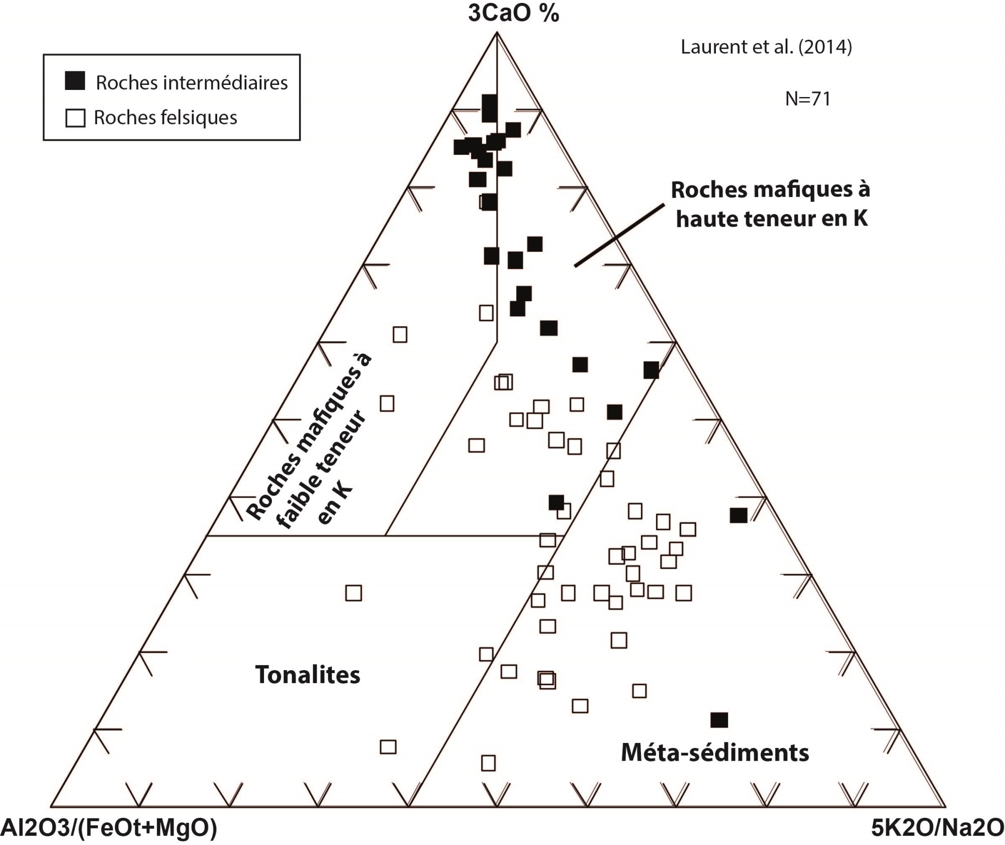 LAURENT, O., MARTIN, A.H., MOYEN, J.F., DOUCELANCE, R., 2014. The diversity and evolution of late-Archean granitoids: Evidence for the onset of “modern-style” plate tectonics between 3.0 and 2.5 Ga. Lithos; volume 205, pages 208-235. https://doi.org/10.1016/j.lithos.2014.06.012