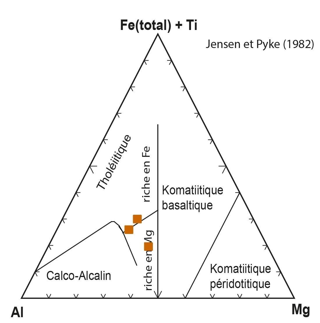La géochimie dans la zone à l’étude est constante avec les autres analyses à travers la Province du Supérieur pour cette unité |