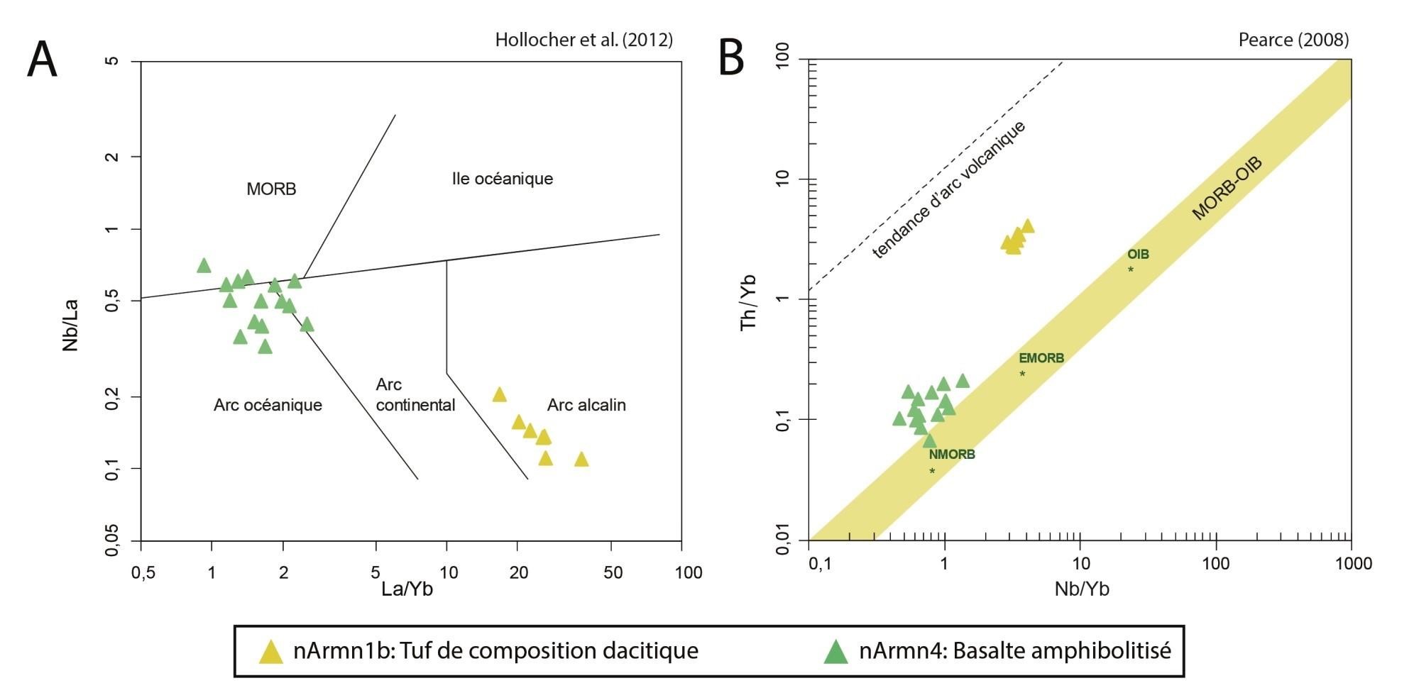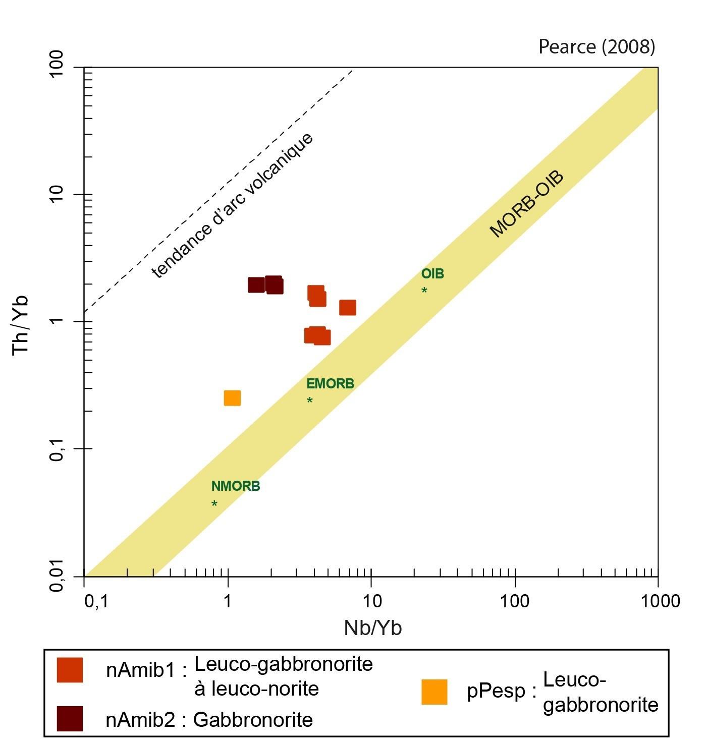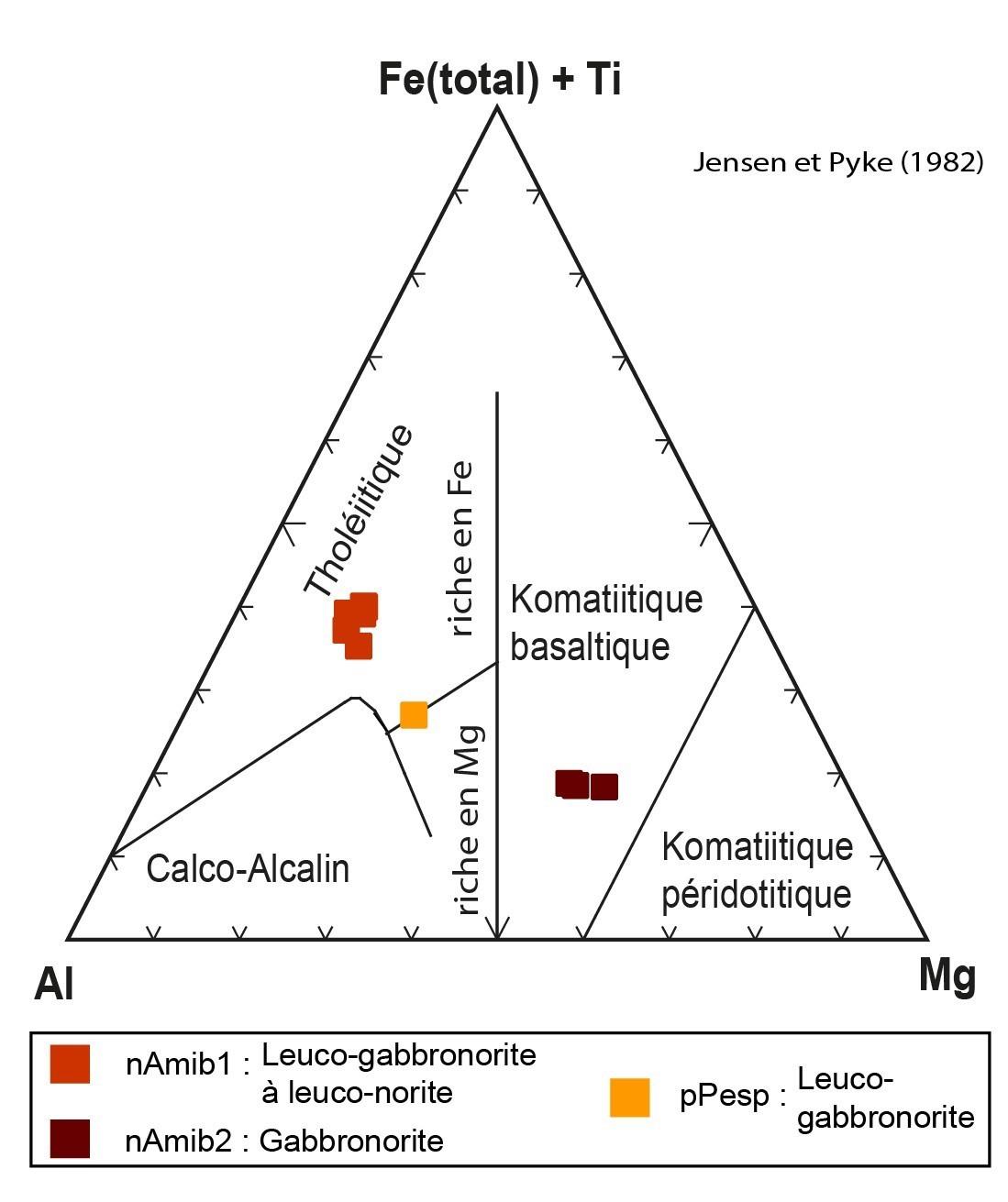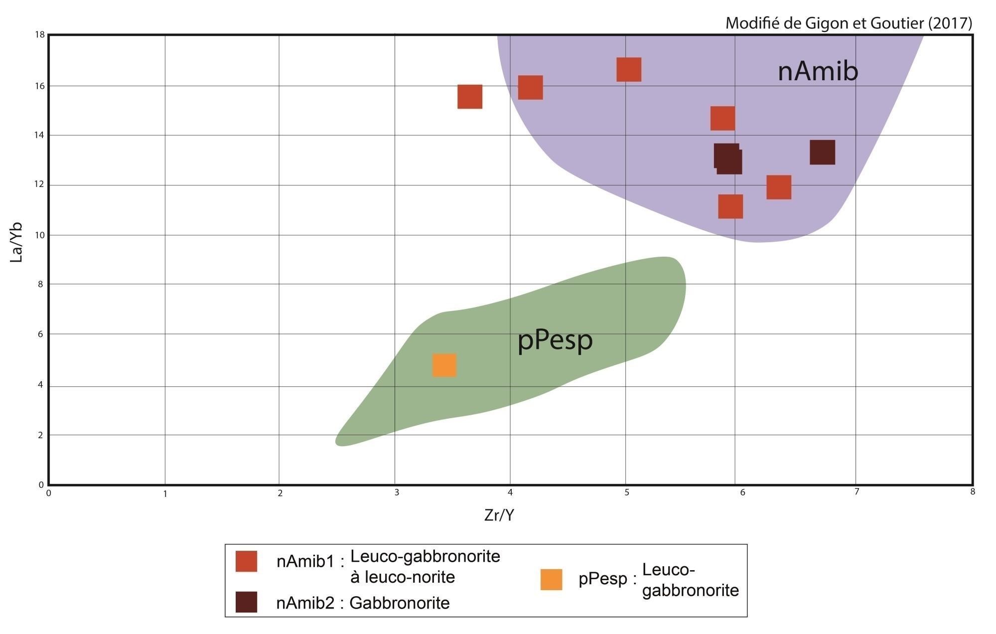 Les unités de gabbronorite (nArmn3) et de volcanites mafiques (nArmn4) ont une chimie très semblable, et sont possiblement cogénétiques