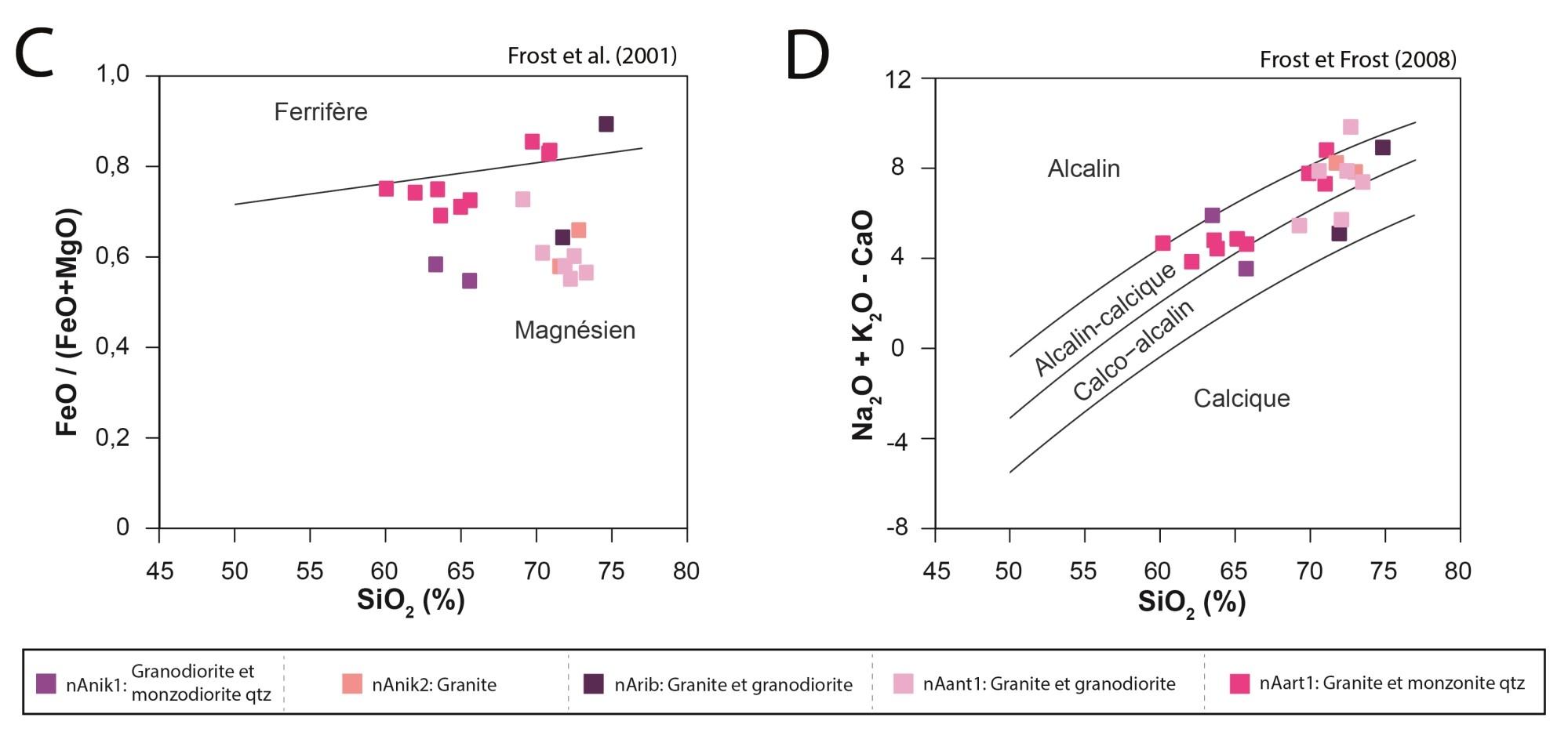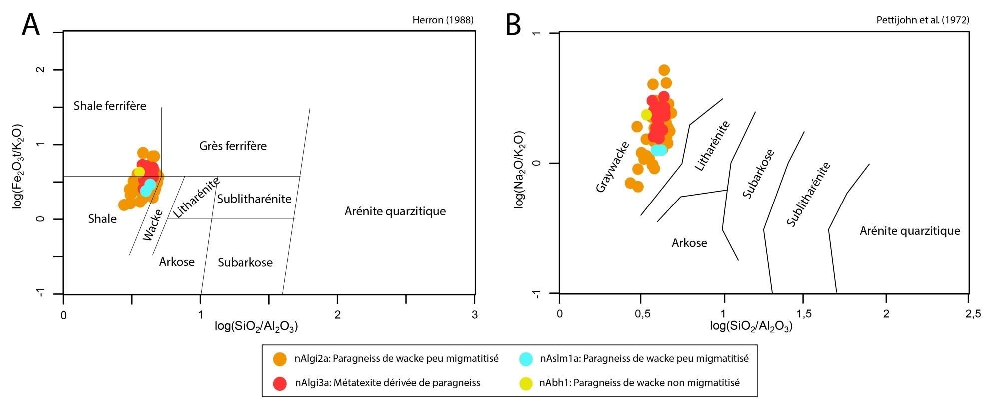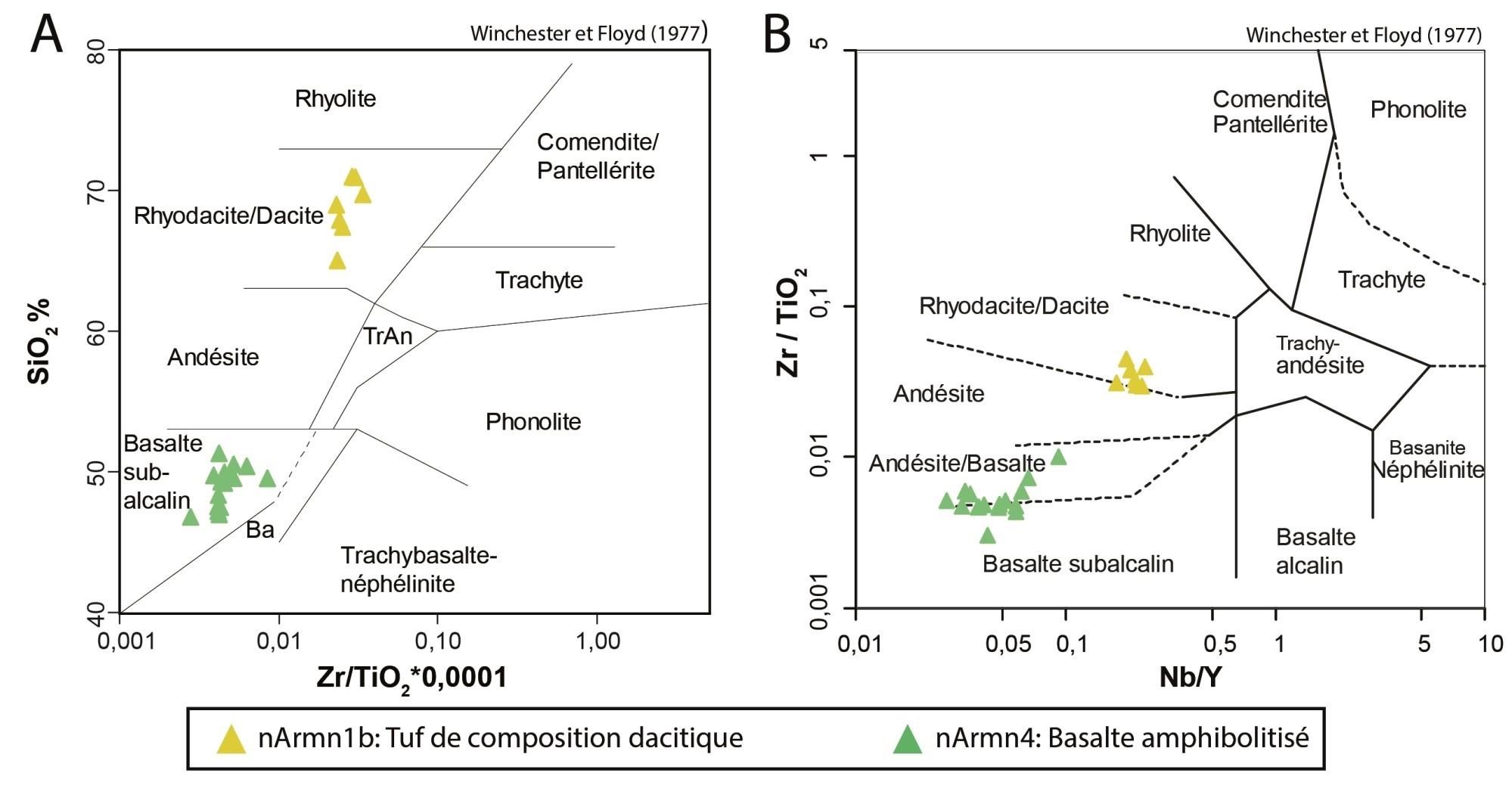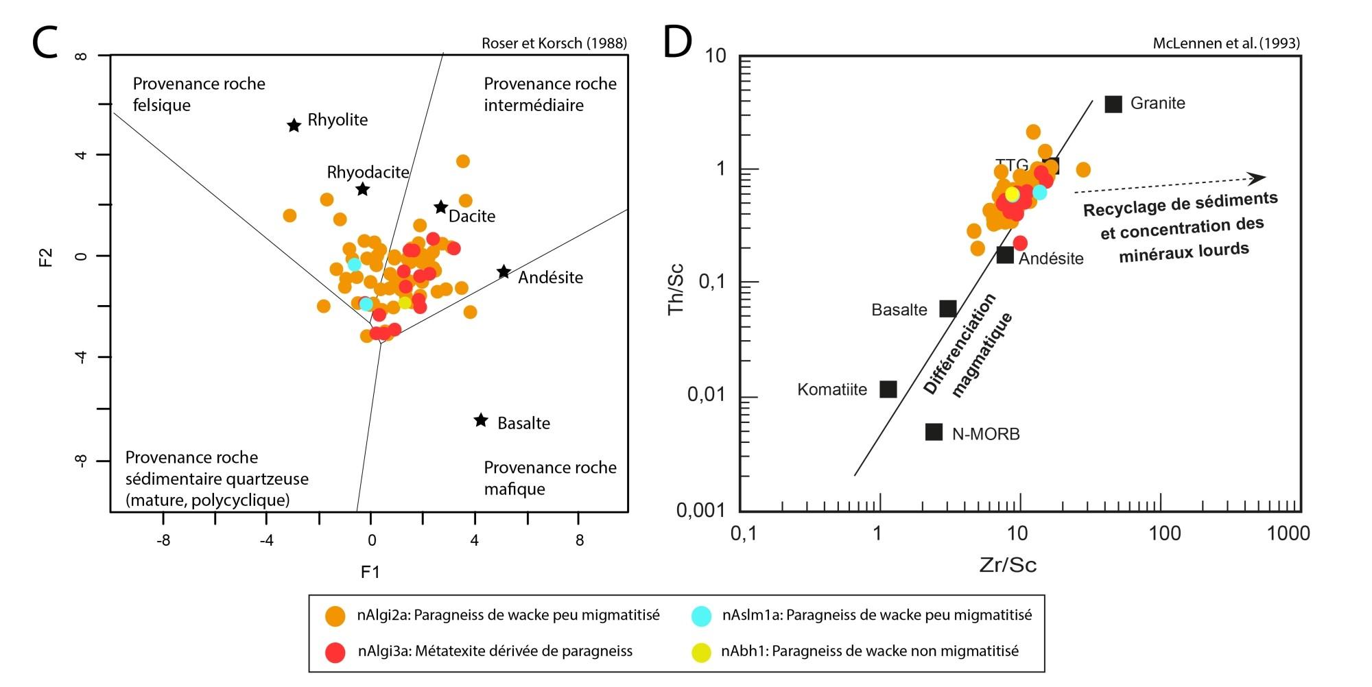 Bien que les relations de terrain indiquent que les roches de l’unité nAchw2 sont bel et bien distinctes de celles de nAchw1, elles sont indissociables au niveau géochimique |