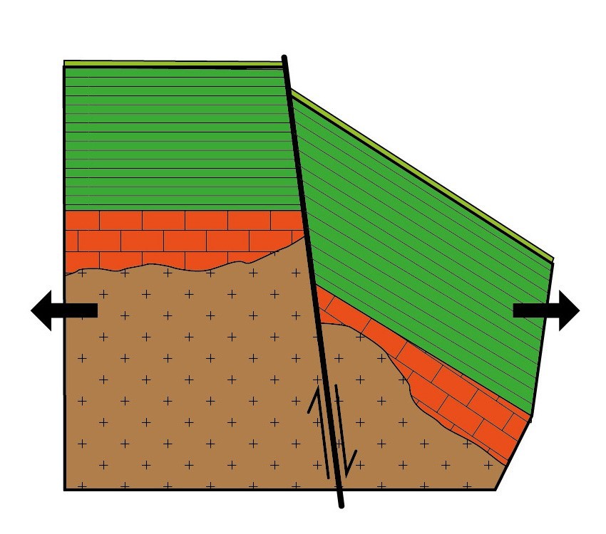 L’extension de la croûte terrestre a entraîné un mouvement le long de la Faille de Montmorency, accompagné du basculement des couches situées au sud de la faille.