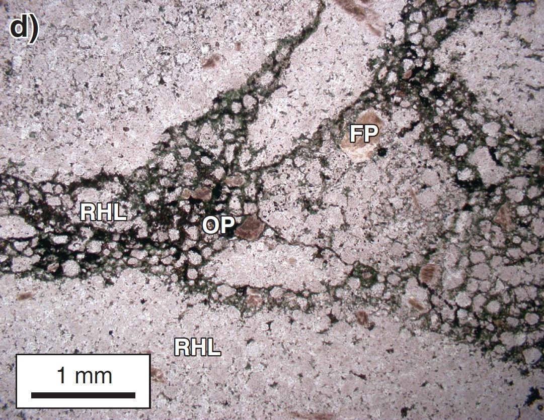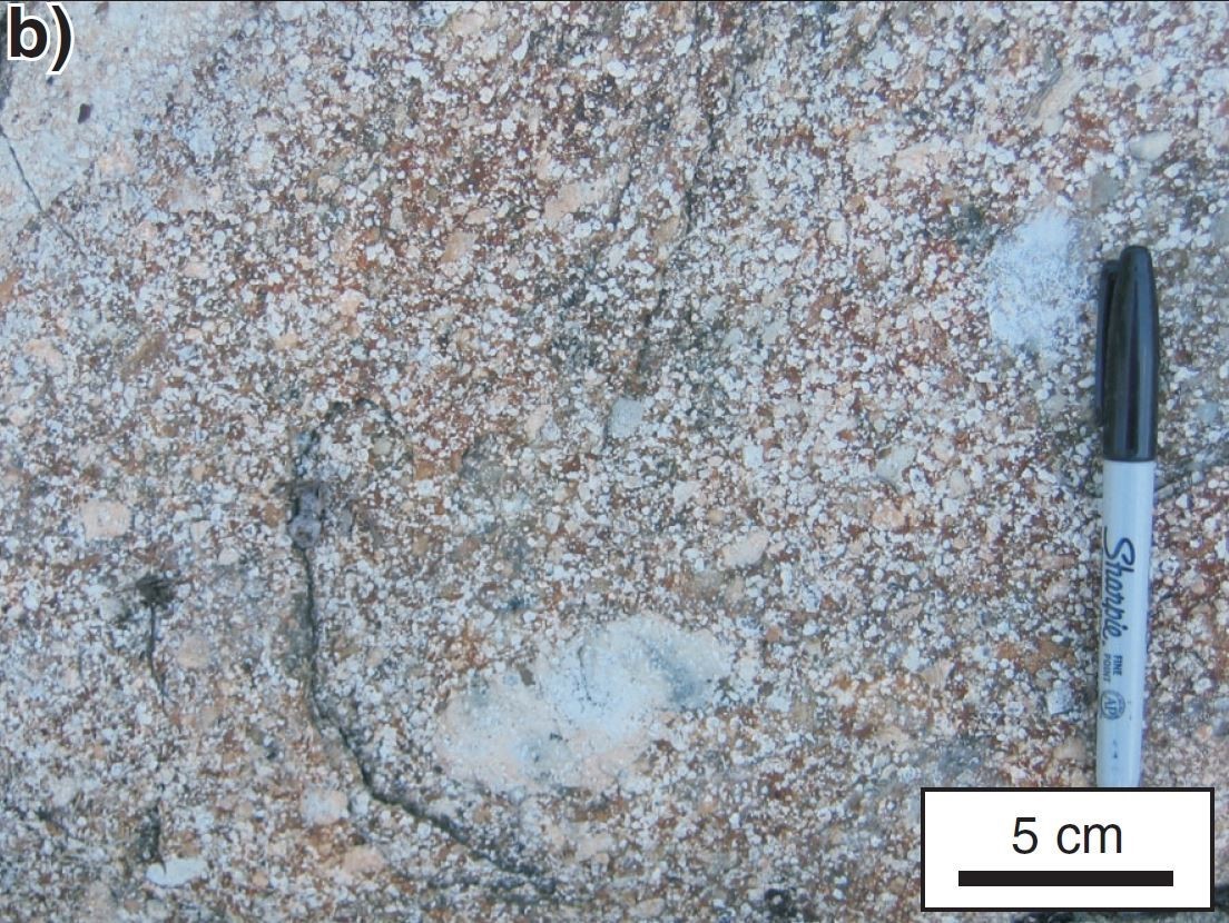 En comparaison, les roches volcanoclastiques du secteur au SW de Reneault ne contiennent pas de « pierre ponce » ou de cristaux de plagioclase libres (Ross et al., 2011a). Elles sont essentiellement monogéniques avec >95 % de clastes constitués de fragments d’andésite basaltique porphyrique à cristaux de plagioclase et contenant en moyenne 12 % de vésicules. Ces clastes contiennent des cristaux de plagioclase similaires à ceux de la « pierre ponce » du secteur au nord de la rivière D’Alembert et ont été interprétés comme la composante immature du secteur au SW de Reneault. Dimroth et Demarcke (1978) ont également observé que les dépôts ne sont pas soudés (c.-à-d. qu’ils ont été mis en place à froid grâce au passage des courants de densité aqueux) et que les particules clairement dérivées de laves coussinées sont absentes (Ross et al., 2011a). Une coupe stratigraphique est décrite de façon détaillée par Ross et al. (2011a) dans le secteur au SW de Reneault.