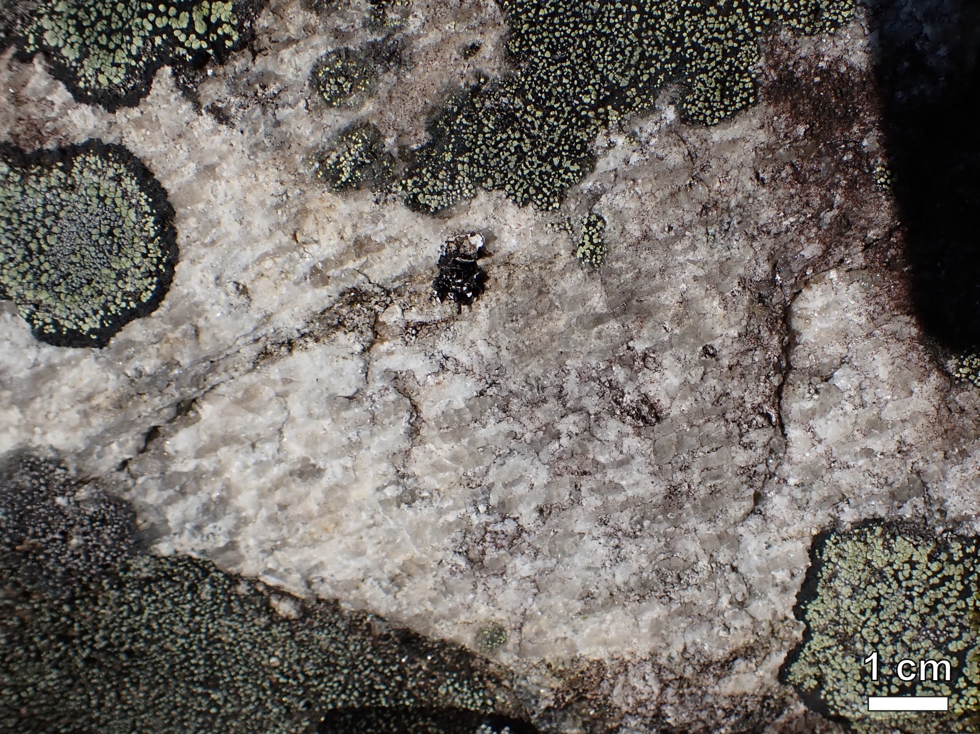 Des clivages de crénulation Sn+1 (affleurements 2018-AB-1053, 2024-ED-4041), dont les plans d’aplatissement sont espacés de ∼1 cm, sont visibles localement. Ils sont orientés ENE-WSW. Des feuillets de biotite définissent les plans de crénulation.