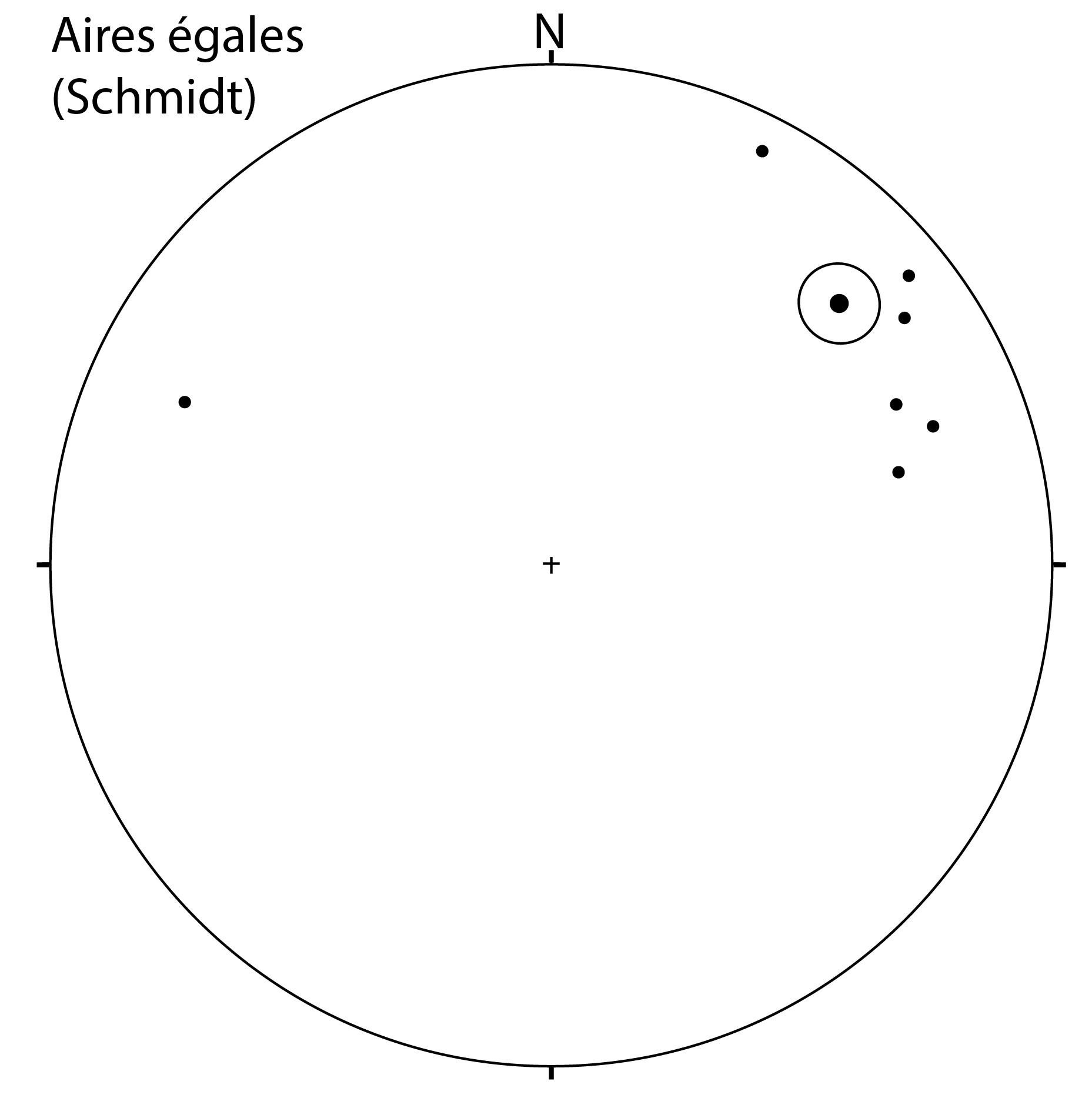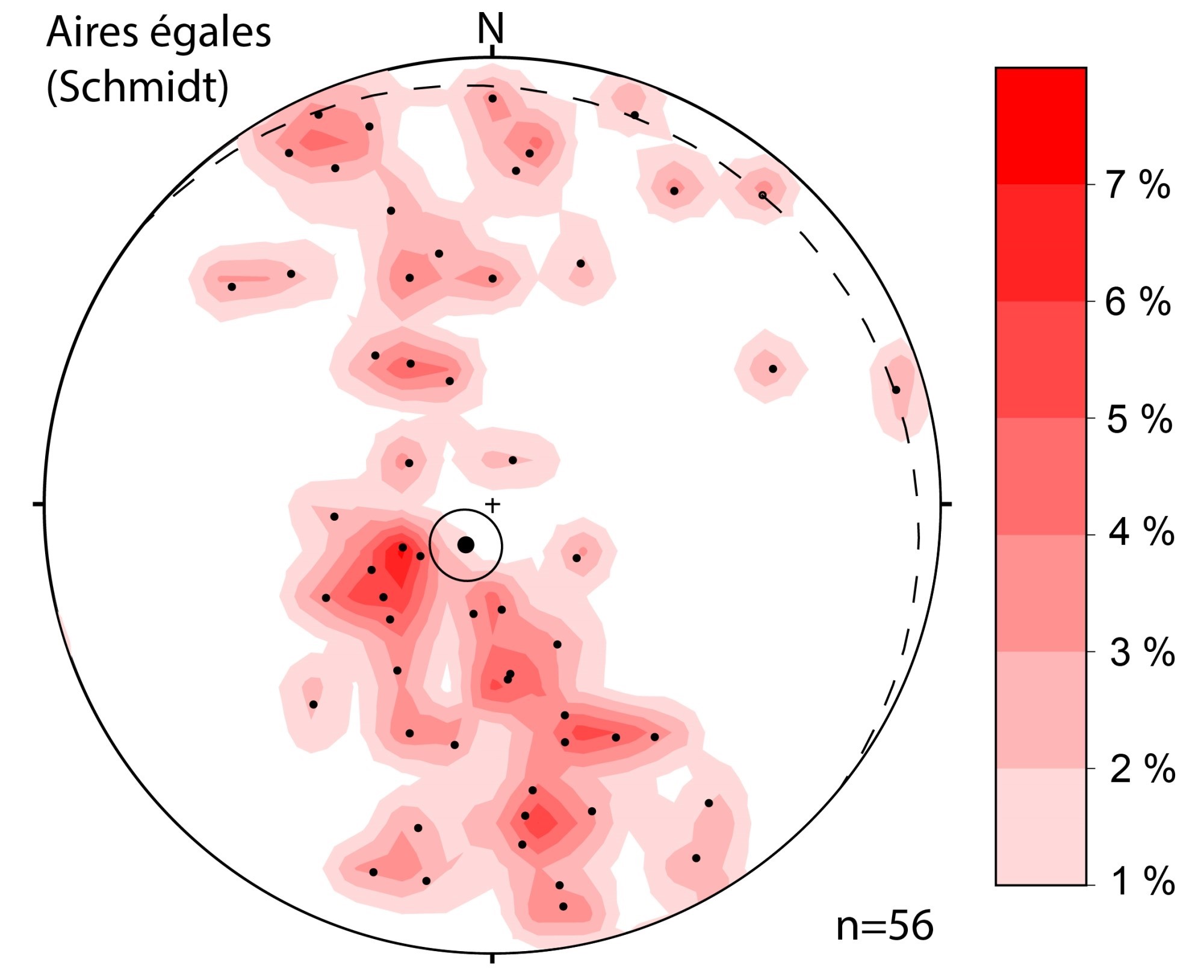 Fabrique principale Type de fabrique Direction (°) Pendage (°) Nombre de mesures Commentaires