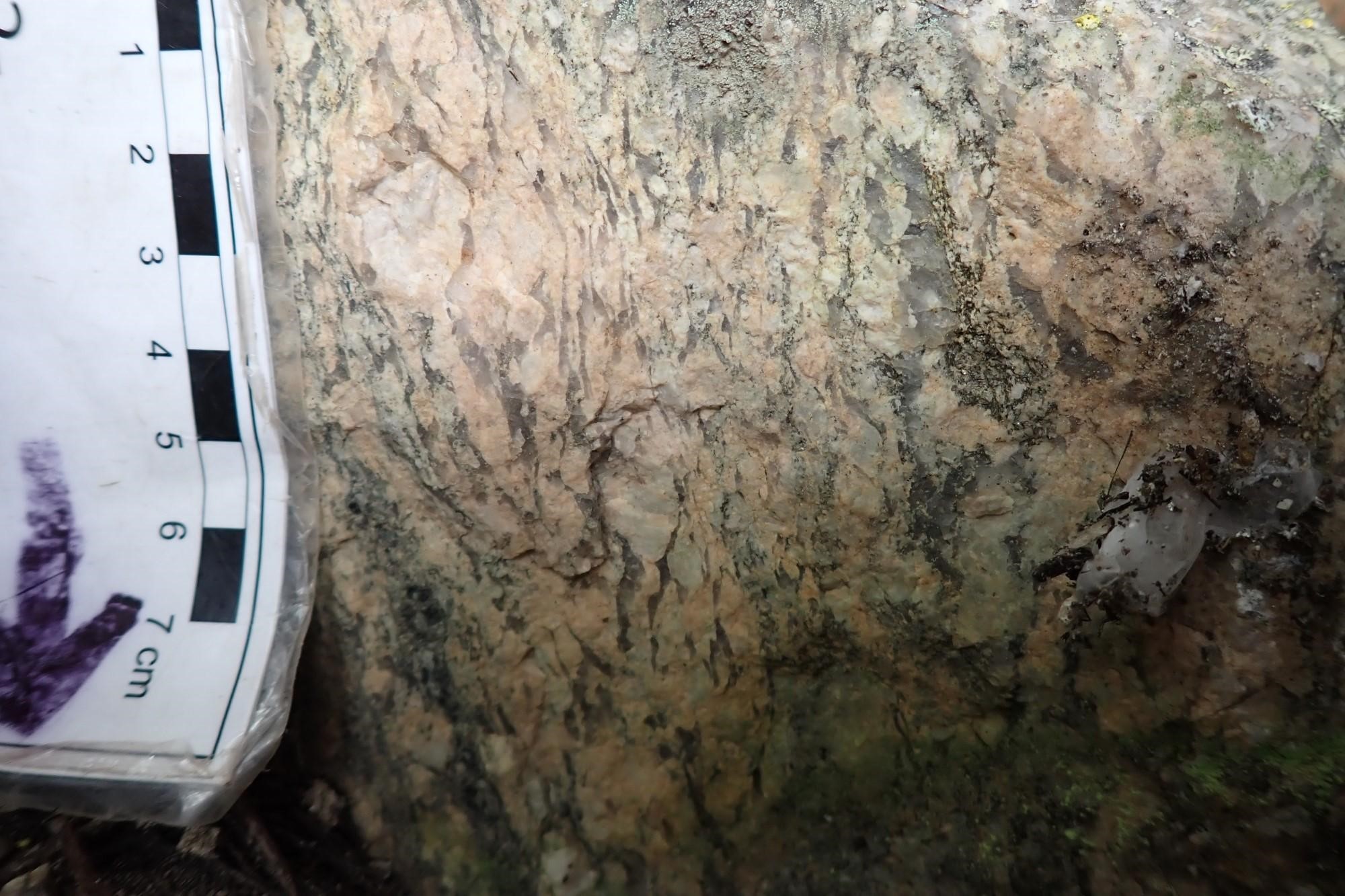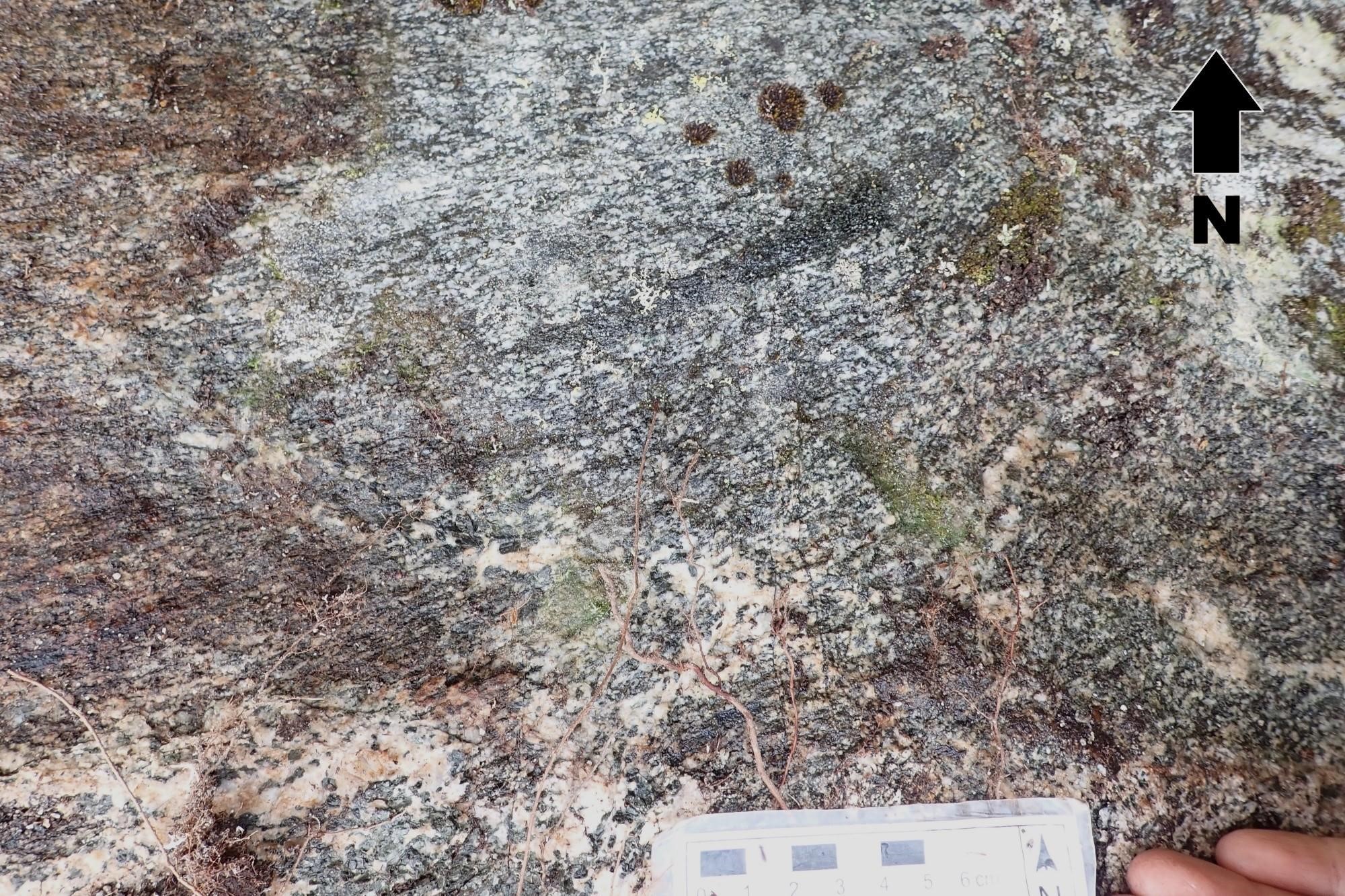 La fabrique secondaire Sn+1 présente une orientation générale ENE-WSW. Cette fabrique est également enregistrée dans le paragneiss du Complexe de Laguiche, et dans les roches intrusives de la Suite de Féron par l’orientation préférentielle des minéraux ferromagnésiens. Sur le terrain, il est généralement difficile de différencier les fabriques Sn et Sn+1. Dans la majorité des cas, une seule des deux fabriques est visible. Toutefois, dans certaines lames minces, il est possible d’observer les deux fabriques.