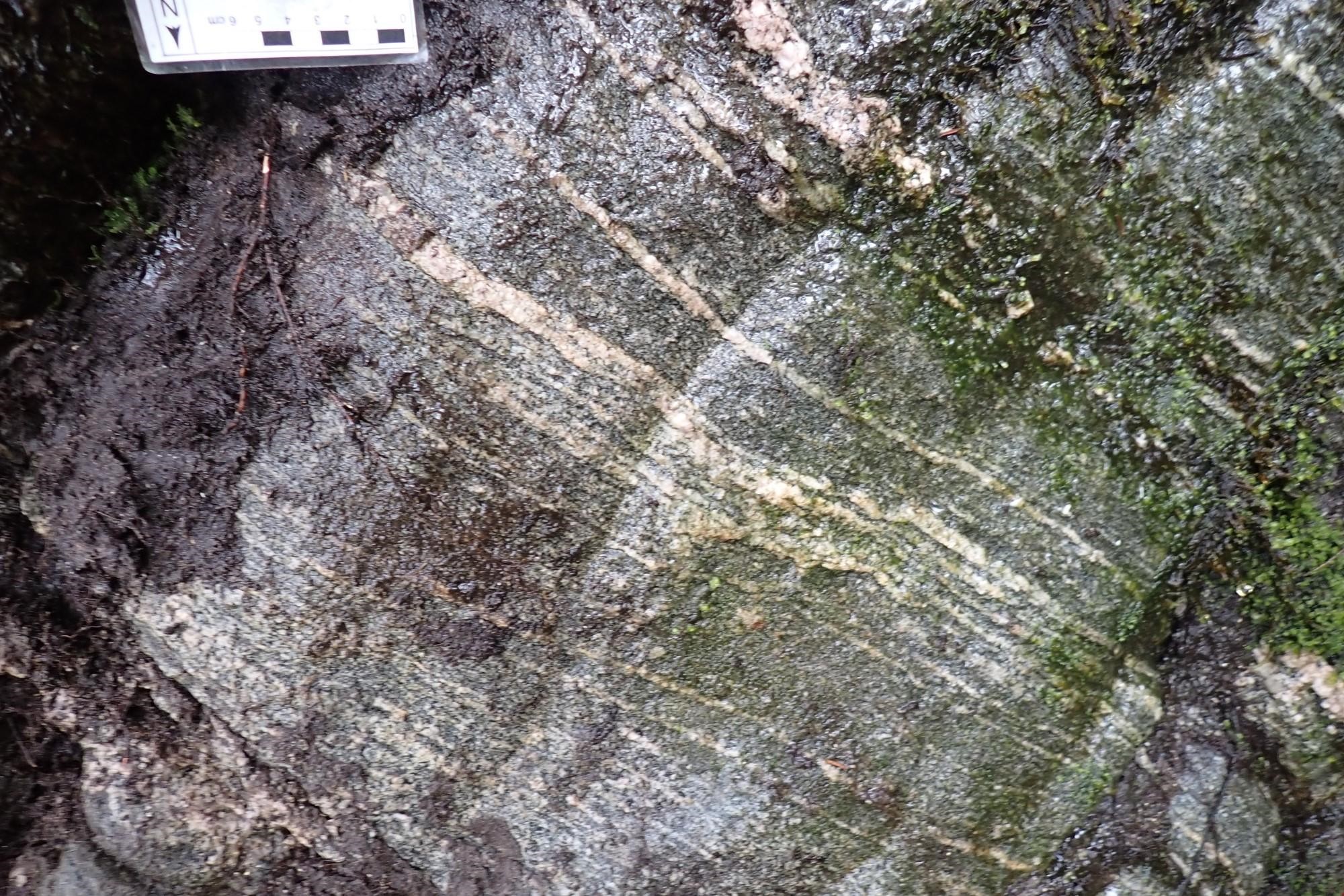 Les foliations des fabriques principales (Sn) et secondaires (Sn+1) sont très affectées par la présence des roches intrusives de la Suite de Féron dans le secteur. Les fabriques semblent orientées selon des patrons de forme ellipsoïdale autour de ces intrusions. D’ailleurs, plusieurs zones en périphérie des intrusions sont plus intensément déformées. Ces zones de déformation peuvent varier de ductiles à cassantes. Malgré l’orientation ondulante des fabriques entre les masses intrusives, celles-ci présentent une orientation dominante WNW-ESE à E-W. On peut observer dans ces zones des roches présentant des textures mylonitiques et cataclastiques.