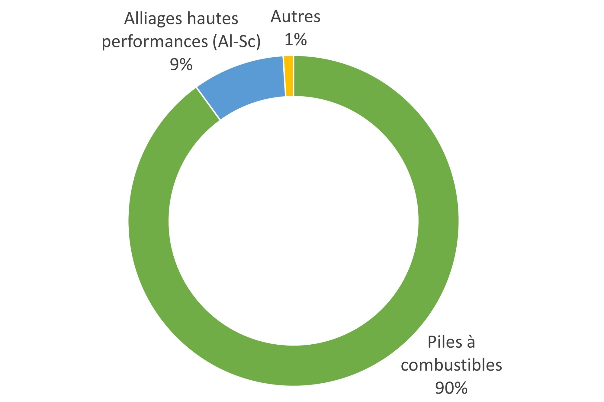 Le scandium est l’un des éléments les plus efficace pour renforcer l’aluminium. On s’en sert pour produire des alliages aluminium-scandium de haute performance destinés à des applications nécessitant des matériaux légers, solides et résistants à la corrosion et à la chaleur, notamment dans l’aérospatiale, l’automobile et l’aéronautique[12,15,16].